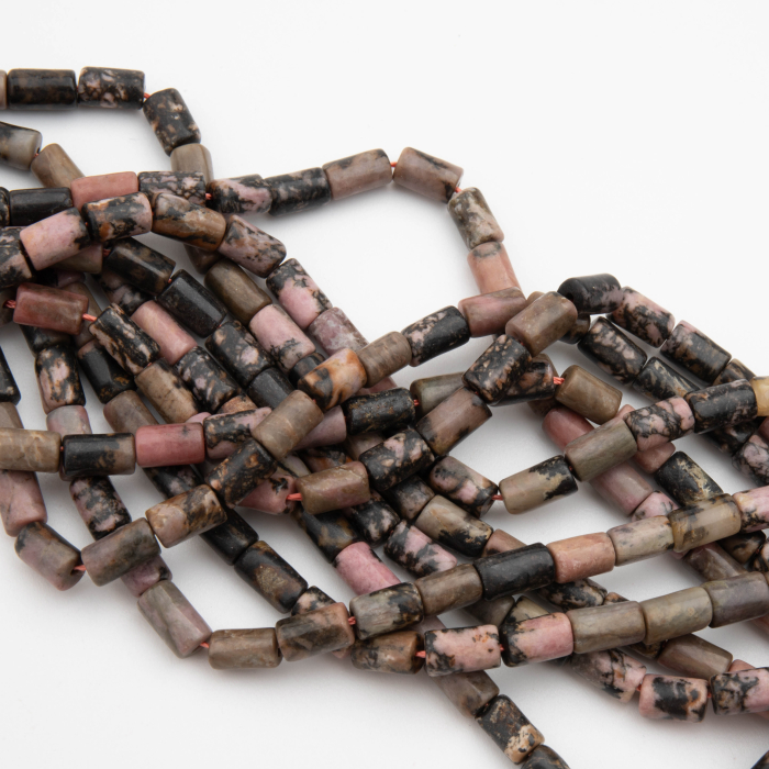 Rodonit wyróżnia się tym, że charakterystyczne różowo-czarne przejścia nadają mu wyrazisty, naturalny wygląd. Rodonit świetnie sprawdza się w autorskich projektach biżuterii o mocniejszym charakterze.