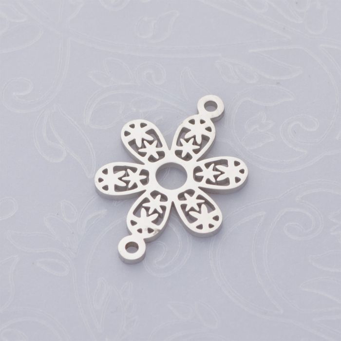 Rozgałęźnik kwiatek w kółku ze stali chirurgicznej w kolorze srebrnym 22x15mm