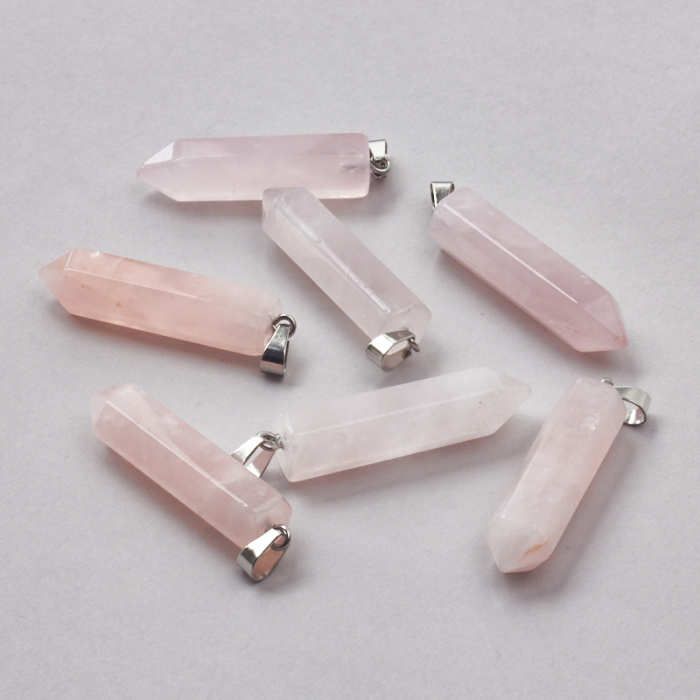 Różowy kryształ górski zawieszka grot 50mm