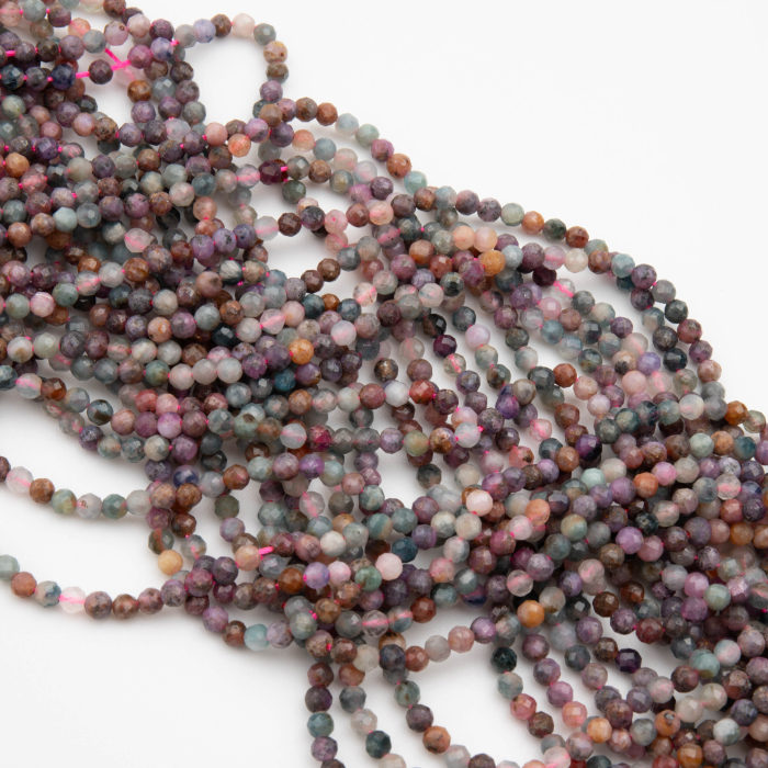 Kamienie naturalne - rubin z szafirem w kształcie kulki fasetowanej. Kamienie są w różnych kolorach np.: różowym, fioletowym, niebieskim, zielonym, pomarańczowym, brązowym, białym. Kulki posiadają naturalnie powstałe wrostki oraz przebarwienia.*Ponieważ są to kamienie naturalne mogą się nieznacznie różnić od siebie rozmiarem i kolorem w zależności od partii produkcyjnej.*Rozmiar podany w nazwie produktu jest wartością orientacyjną. Charakterystyka: