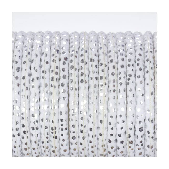 Rzemień klejony śniegowy w srebrne cętki 4mm