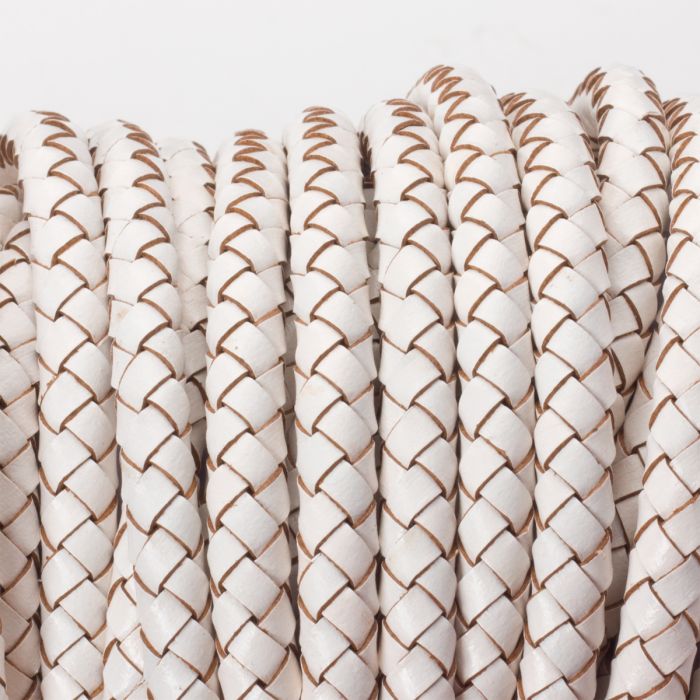 Rzemień naturalny pleciony lakierowany 6mm biały