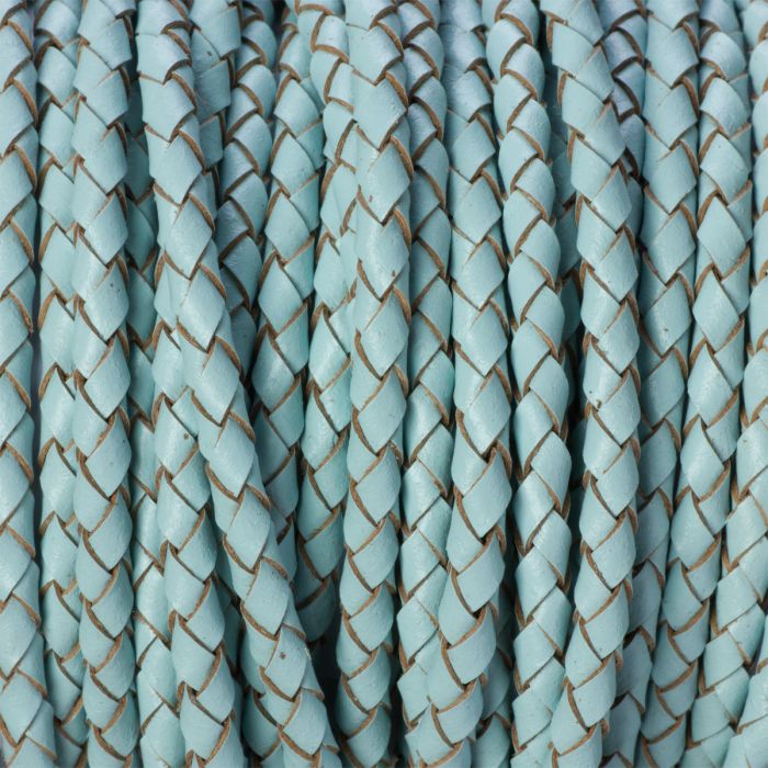 Rzemień naturalny pleciony pastelowy błękitny 4mm