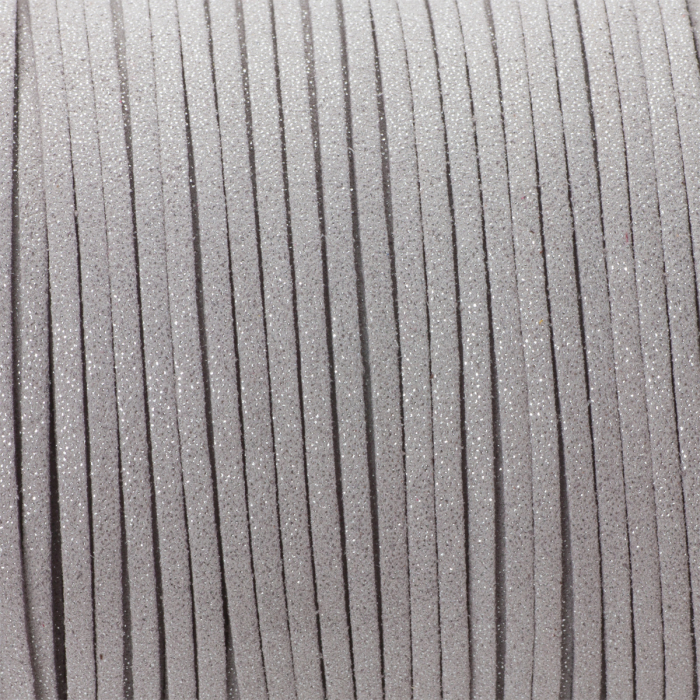 Rzemień zamszowy płaski srebrny z brokatem 1x2.5mm