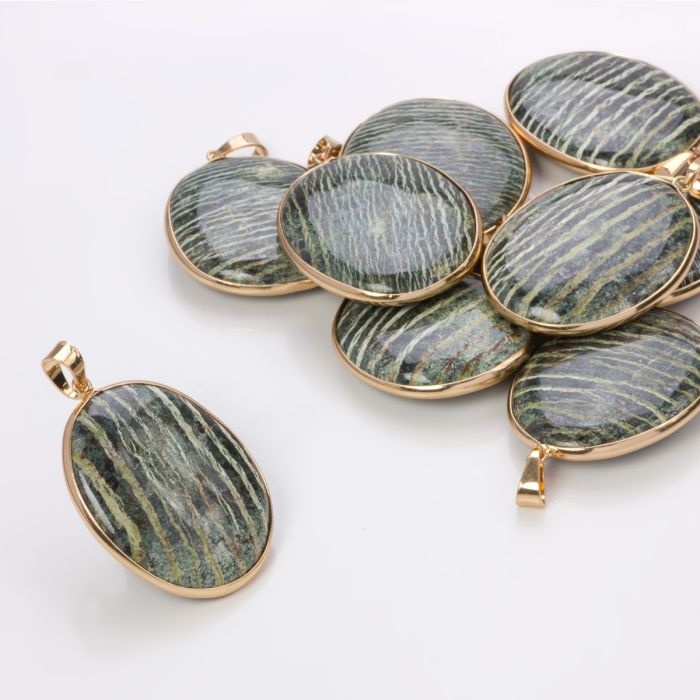 Serpentynit zawieszka w okuciu zielona 40-50mm