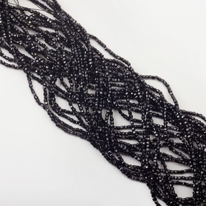 Kamienie naturalne wykonane ze spinelu w kształcie kostki fasetowanej. Kamienie są w kolorze czarnym. Dzięki temu, że są fasetowane pięknie się błyszczą, mienią.*Ponieważ są to kamienie naturalne mogą się nieznacznie różnić od siebie rozmiarem.*Rozmiar podany w nazwie produktu jest wartością orientacyjną. Charakterystyka: