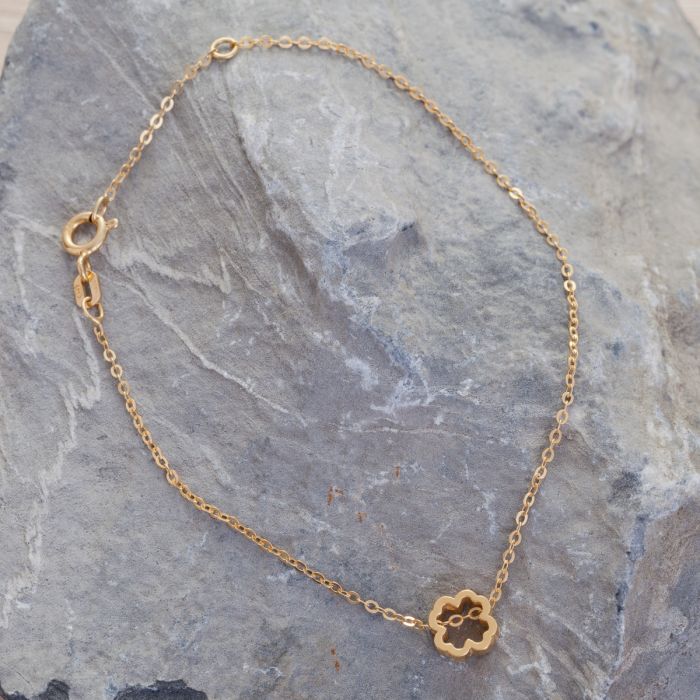 Srebrna bransoletka simple z wycinaną koniczynką AG925 pozłacana 18.6cm