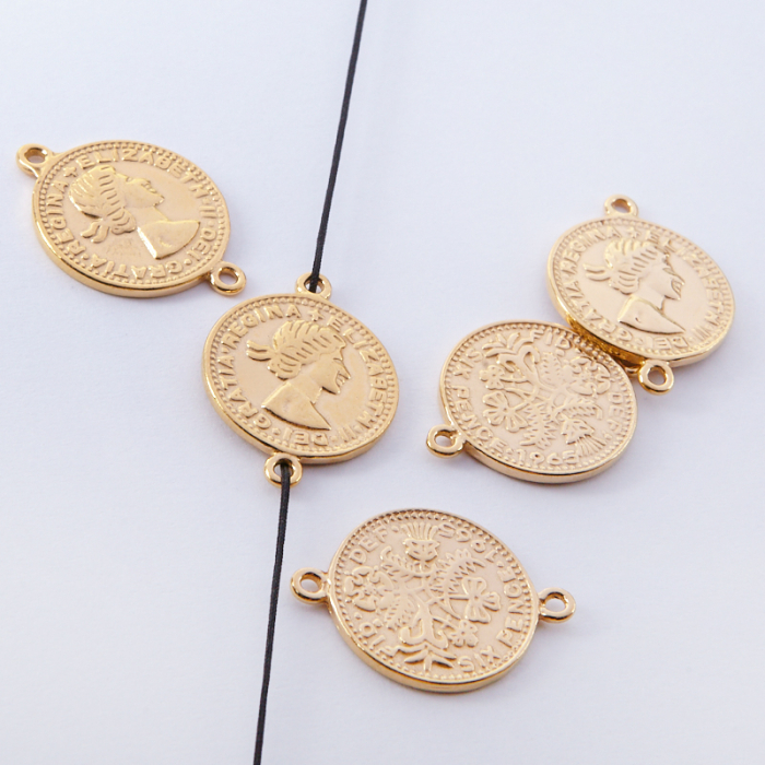 Srebrna moneta łącznik Elżbieta II Dei Gratia Regina pozłacana 17mm