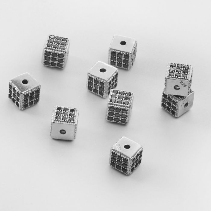 Srebrna przekładka kostka z czarnymi cyrkoniami AG925 5mm