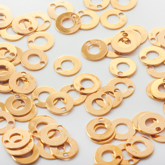 Produkt wykonany jest ze srebra próby 925 pokrytego warstwą złocenia galwanicznego. Złocenie stanowi warstwę wierzchnią i w trakcie użytkowania może ulegać naturalnemu ścieraniu. Trwałość powłoki zależy m.in. od intensywności noszenia, tarcia, kontaktu z wodą i kosmetykami oraz indywidualnego pH skóry. Proces ten jest naturalną cechą wyrobu złoconego i nie stanowi wady produktu.