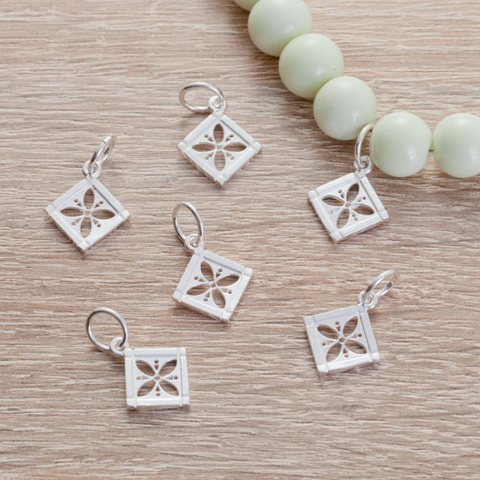 Srebrna zawieszka kwadrat z lilijką AG925 13mm