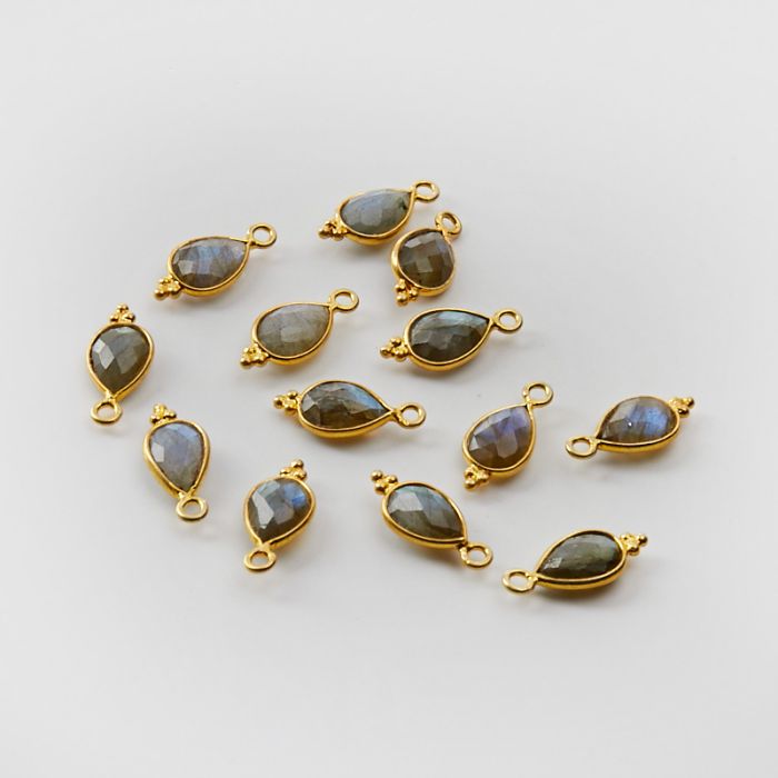 Srebrna zawieszka labradoryt w srebrnym okuciu AG925 pozłacana 9mm