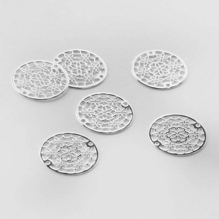 Srebrna zawieszka\ łącznik kółko z kwiatkami AG925 16mm