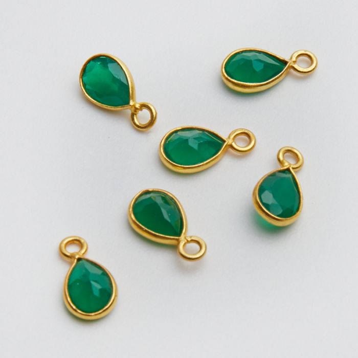 Srebrna zawieszka łezka zielony onyks w okuciu AG925 pozłacana 7x5mm