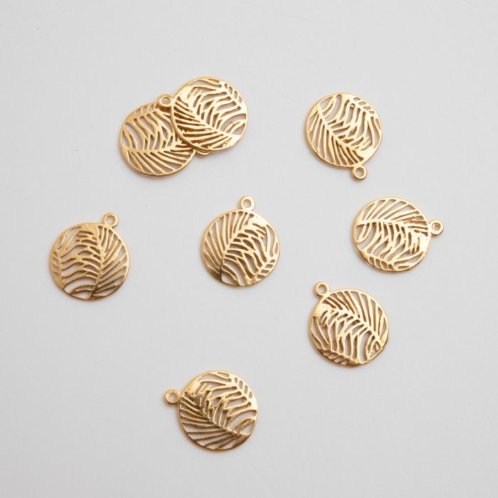 Srebrna zawieszka liść palmowy ażurowa, 925, pozłacana 14mm