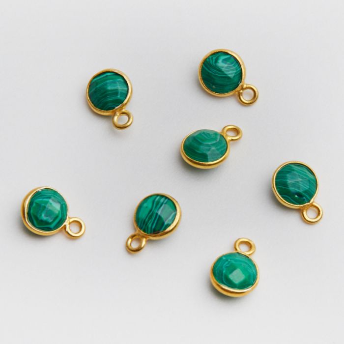Srebrna zawieszka malachit fasetowany w okuciu pozłacany AG925 6mm