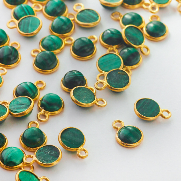 Srebrna zawieszka malachit gładki w okuciu pozłacany AG925 6mm