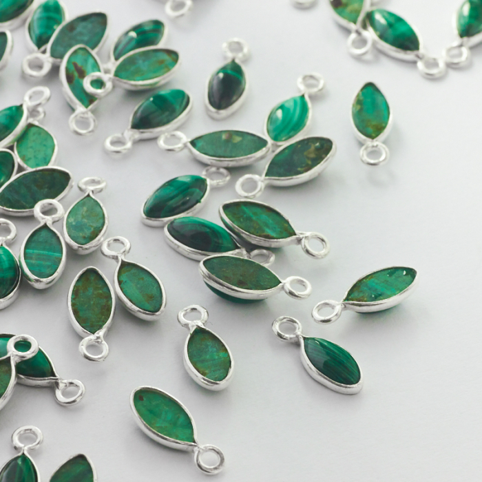 Srebrna zawieszka malachit w okuciu AG925 7x3,5mm