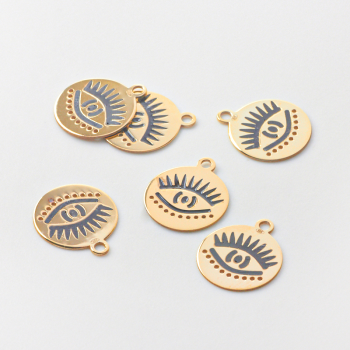 Srebrna zawieszka oko w kółku AG925 pozłacana 14mm