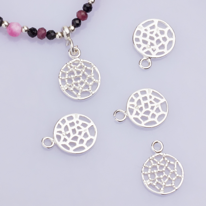 Srebrna zawieszka pajęczyna w kółku AG925 9mm