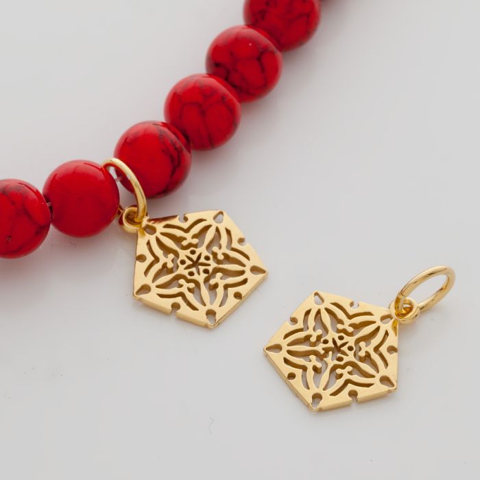 Srebrna zawieszka pięciokąt ażurowy z kółeczkiem AG925 pozłacana 16mm
