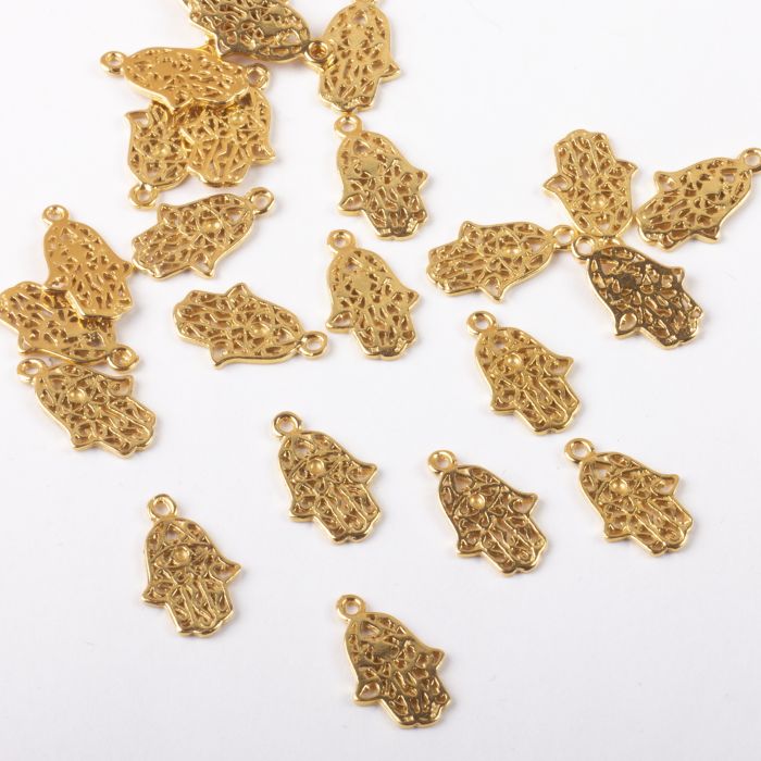 Srebrna zawieszka ręka Fatimy mini AG925 pozłacana 14x9mm