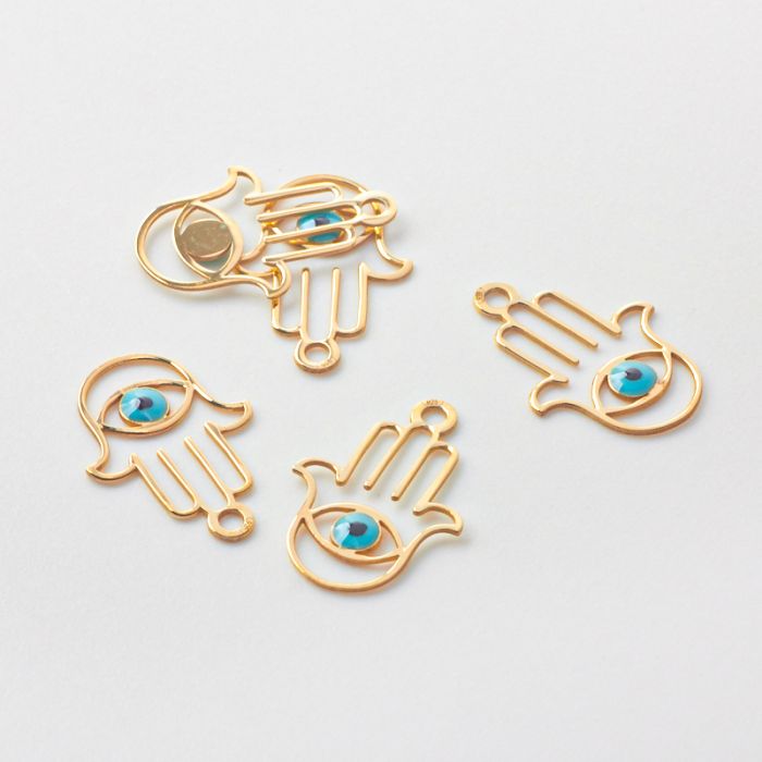 Srebrna zawieszka ręka Fatimy z turkusowym okiem AG925 pozłacana 16,5mm