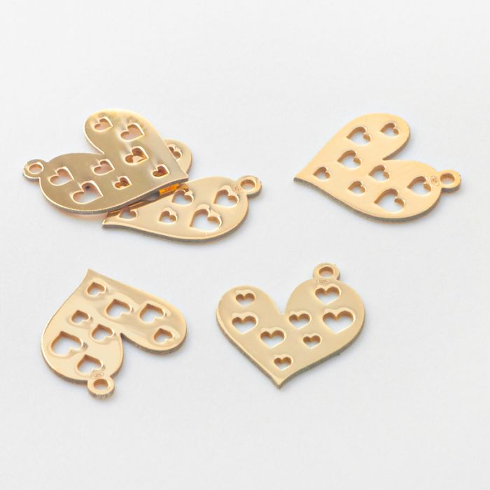 Srebrna zawieszka serce z wyciętymi sercami AG925 pozłacana 12mm