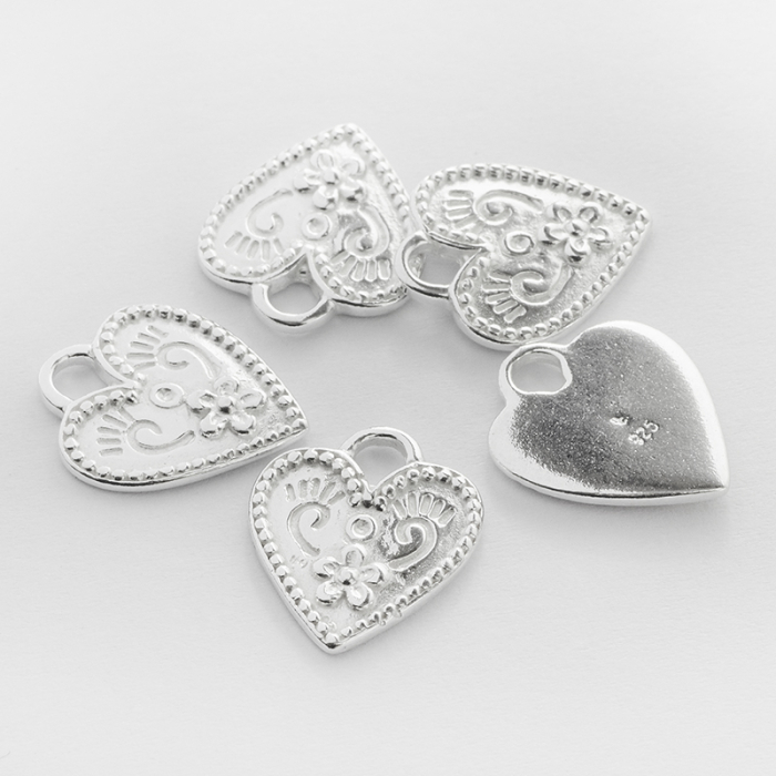 Srebrna zawieszka serce ze zdobieniami AG925 17mm
