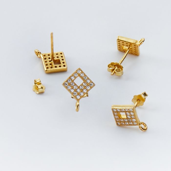 Srebrne bazy kolczyków kwadraty z cyrkoniami z podwieszeniem AG925 pozłacane 12,5mm