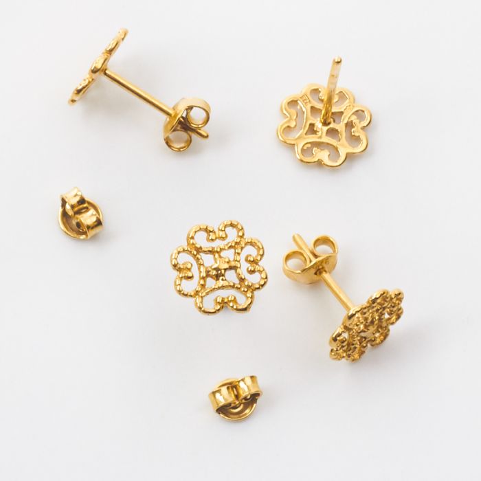 Srebrne kolczyki ażurowe kwiatki AG925 pozłacane 8,5mm