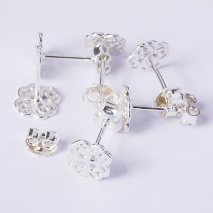 Srebrne kolczyki koniczynka ażurowa AG925 8mm