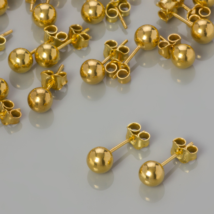Srebrne kolczyki kulki z barankami, próba 925 pozłacane 6mm