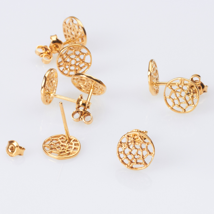 Srebrne kolczyki pajęczyna AG925 pozłacane 9mm