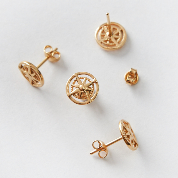 Srebrne kolczyki sztyfty róże wiatrów AG925 pozłacane 9mm