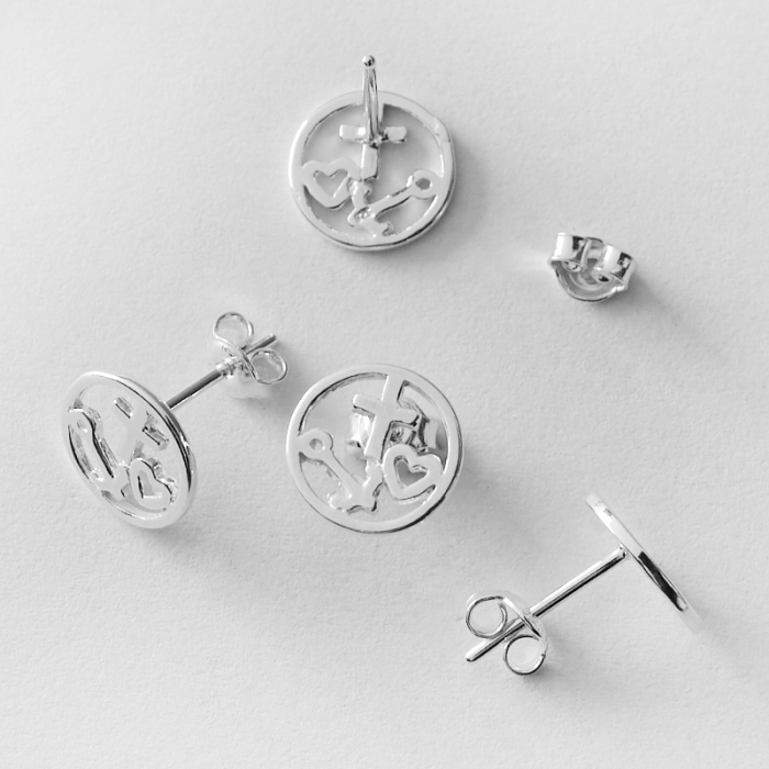 Srebrne kolczyki sztyfty wiara, nadzieja, miłość 9,5mm