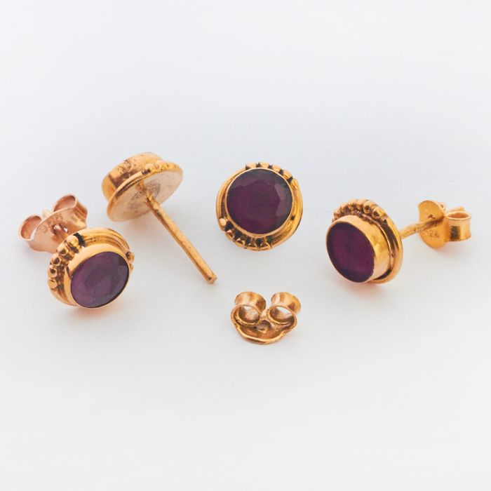 Srebrne kolczyki z fasetowanym rubinem pozłacane AG925 7mm