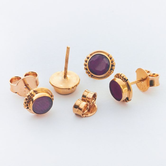 Srebrne kolczyki z fasetowanym rubinem pozłacane AG925 7mm