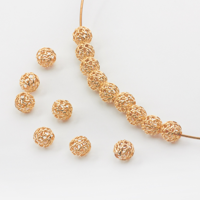 Srebrne kulki ażurowe AG925 pozłacane 6mm