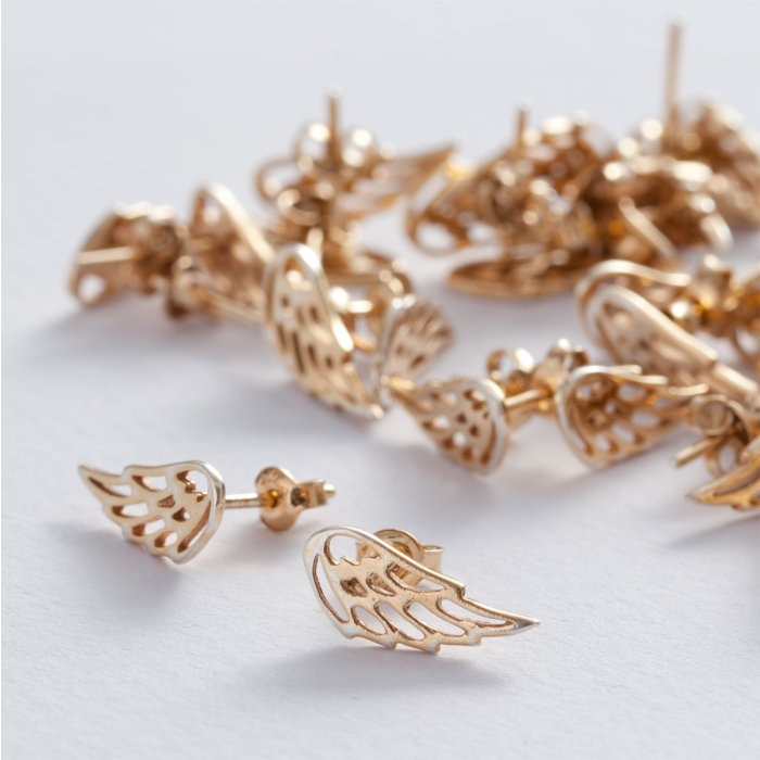 Srebrne, pozłacane kolczyki skrzydła, próba Ag925 13,5x5,5mm