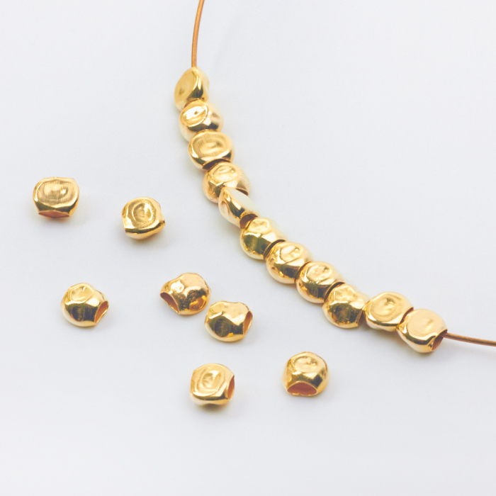 Srebrne przekładki kulki zgniecione młotkowane AG925 pozłacana 5,5x3mm