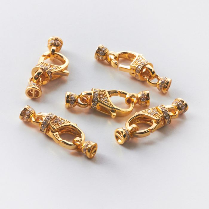 Srebrne zapięcie karabińczyk z końcówkami z cyrkoniami AG925 pozłacane 23,5mm
