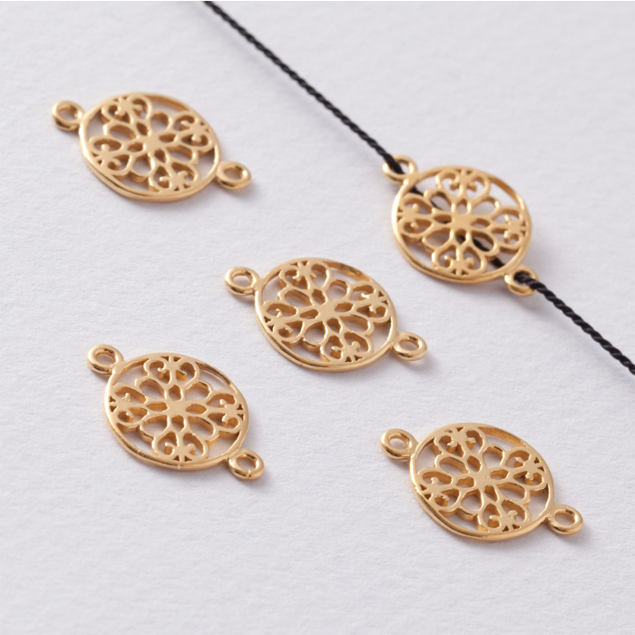 Srebrny łącznik do bransoletek kółko ażurowe AG925 pozłacany 18x12mm
