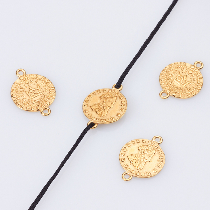 Srebrny łącznik moneta z koroną AG925 pozłacany 19mm