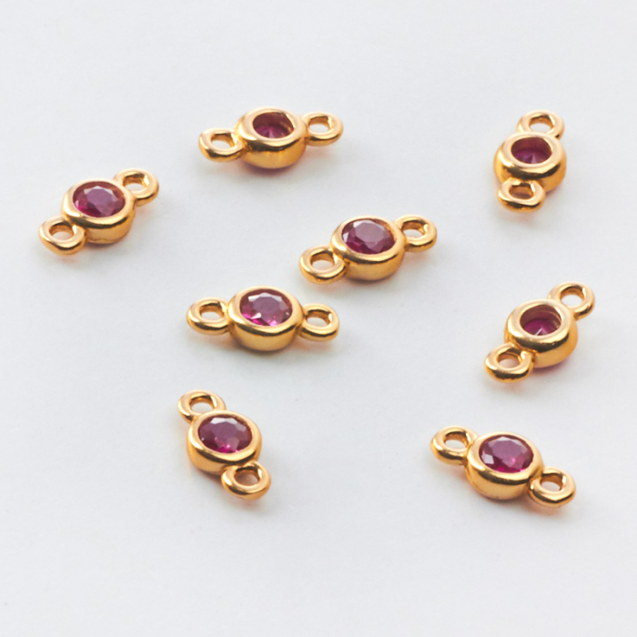 Srebrny łącznik oczko z bordową cyrkonią AG925 8mm