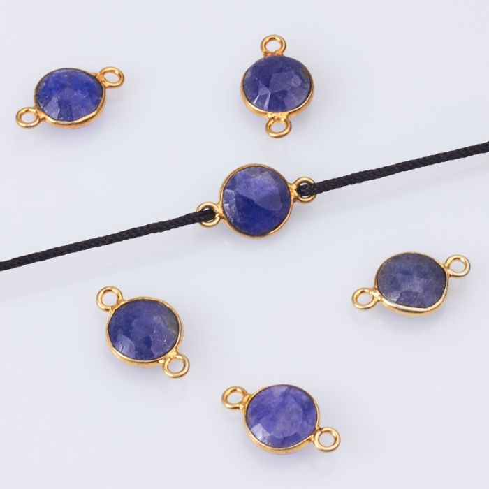 Srebrny łącznik szafir w okuciu AG925 pozłacany 15mm