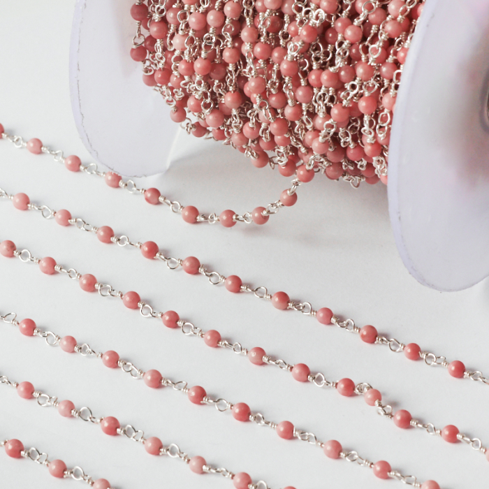 Srebrny łańcuch z różowym koralem AG925
