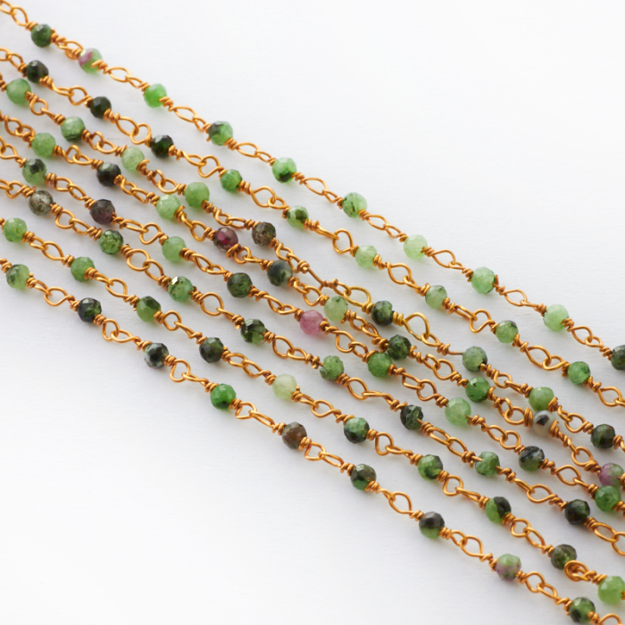 Srebrny łańcuch z zoisytem i rubinem mix pozłacany AG925 2mm
