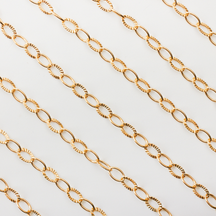 Srebrny łańcuszek owale nacinane AG925 pozłacany 8x5mm