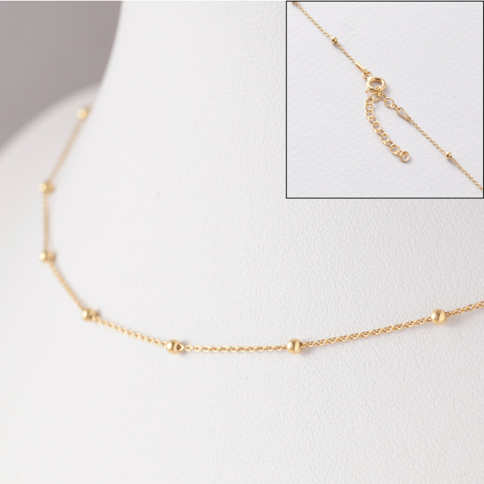 Srebrny łańcuszek simple z kuleczkami z przedłużką AG925 pozłacany 44cm